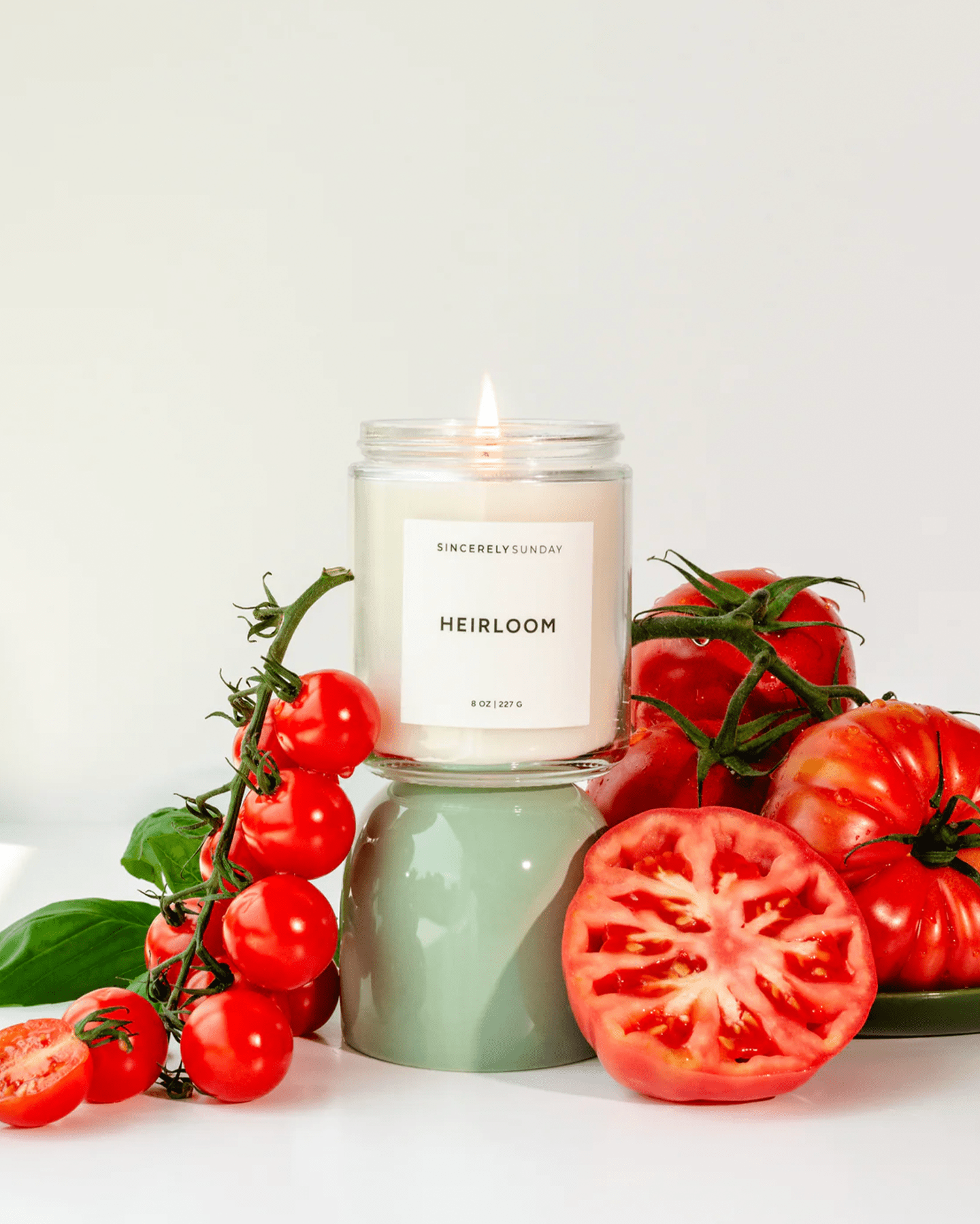 Sincerely Sunday Heirloom candle refill kit with tomato leaves, basil and sage scent on a textured background. Sincerely Sunday Heirloom candle refill kit with tomato leaves, basil and sage scent on a textured background.