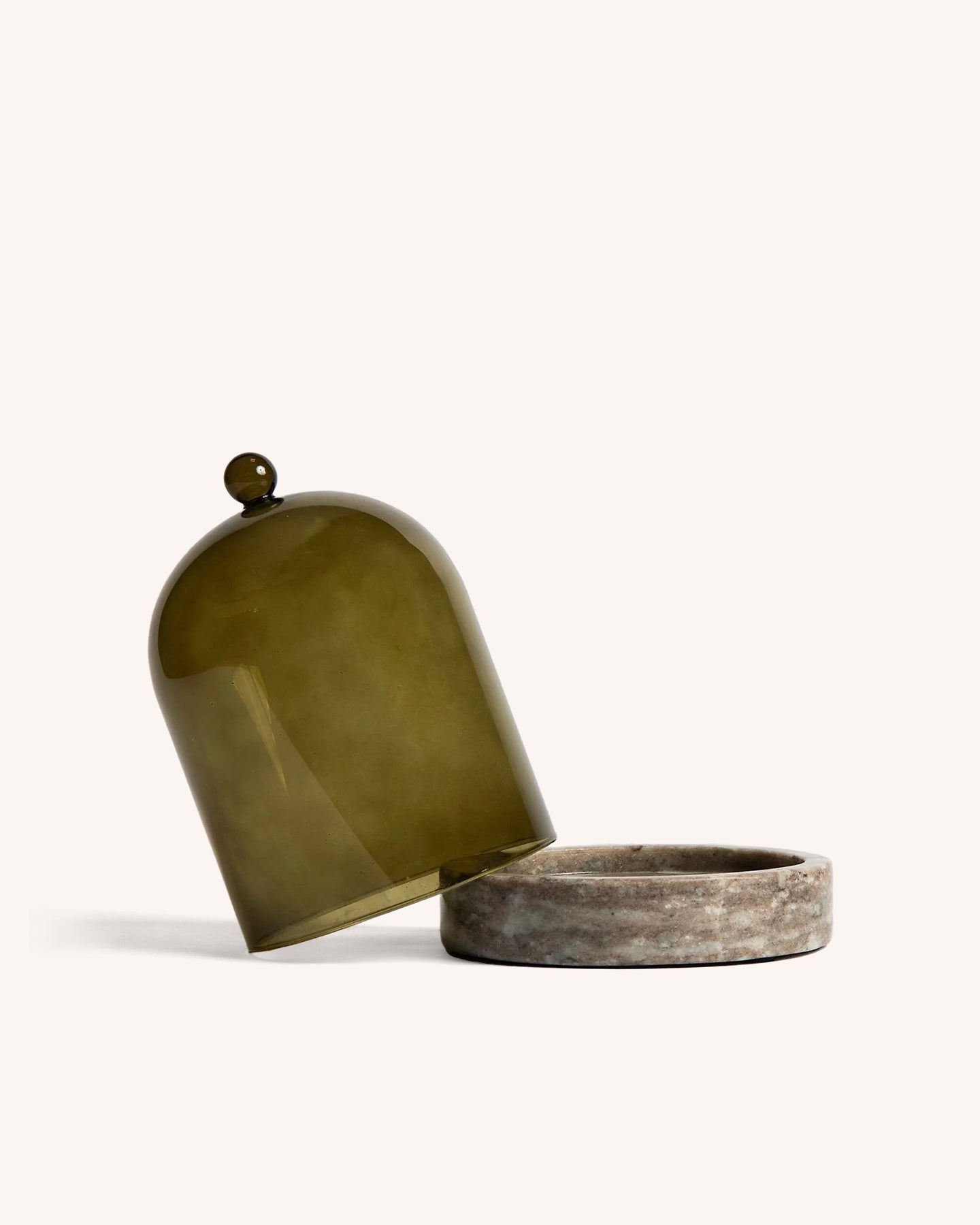 Olive Cloche + Stone combines the timeless elegance of olive, stone, and glass to create a stunning piece that will elevate any space. The intricate details and craftsmanship make this cloche a true work of art, showcasing the beauty of natural materials.